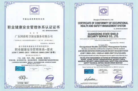 職業(yè)健康安全管理體系認(rèn)證證書(shū)